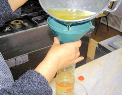 A primeira medida a ser tomada é armazenar as sobras da fritura em vez de jogar no ralo da pia ou no cesto lixo. Este armazenamento pode ser feito em garrafa pet com tampa, por exemplo. Não devemos utilizar recipientes de vidro, pois podem quebrar e além de fazer sujeira pode causar acidentes. O segundo passo é encaminhar para uma destinação adequada e é aí que entra a nossa empresa. Você agenda um dia na semana ou a cada 15 dias e vamos até o seu local para fazer a coleta.
